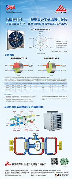 無錫市聯眾控濕節能設備有限公司成立于2004年2月,是一家長期致力于把空氣吸附分離技術應用于空氣處理設備的科技型中外合作 企業,主要研發生產轉輪除濕機組、熱泵除濕機組、空氣與空氣熱 能交換回收機組、蒸發冷卻空調機組、有機廢氣凈化處理機組等非 標空氣處理設備。隨著生產規模的不斷壯大和產業化的精細分工, 聯眾公司與2011年10月在江蘇省宜興市萬石鎮工業園茶亭路8號, 一期投資5000萬元,置地25畝、建標準工業廠房10000平方米和辦 公樓3000平方米,重新注冊成立江蘇聯眾聯勝節能設備有限公司。 企業領導層決定確立江蘇聯眾聯勝公司以研發生產蒸發冷卻空調機 組、有機廢氣凈化處理機組等大型節能環??諝馓幚碓O備為主;而無錫聯眾控濕公司則在無錫繼續以研發生產轉輪除濕機組、熱泵除濕機組、空氣與空氣熱交器為主。在國內暖通空調工程領域,聯眾控濕公司研發各類轉輪除濕機的技術能力、生產各類轉輪除濕機的 裝備制造工藝水平處于本行業前沿。